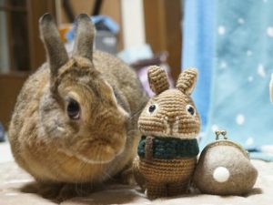 おしりちゃんたちと一緒に写っている「あみぐるみ」のうさちゃんたち♡